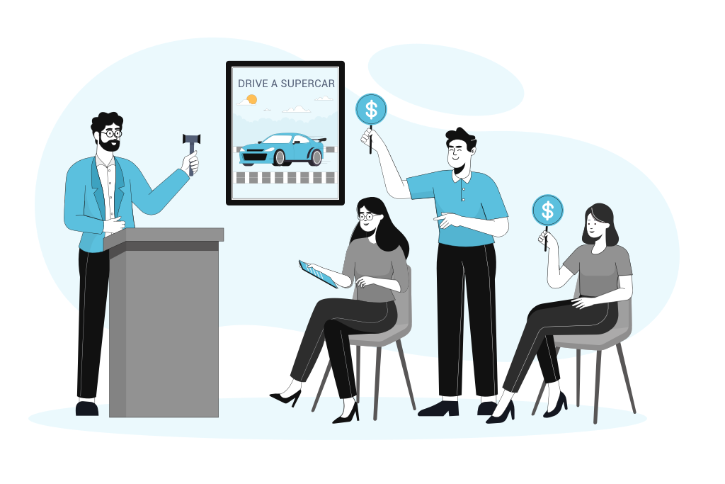 Supercar driving, skydiving, and other thrills are popular at charity auctions.